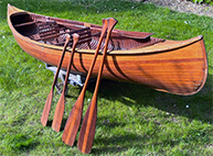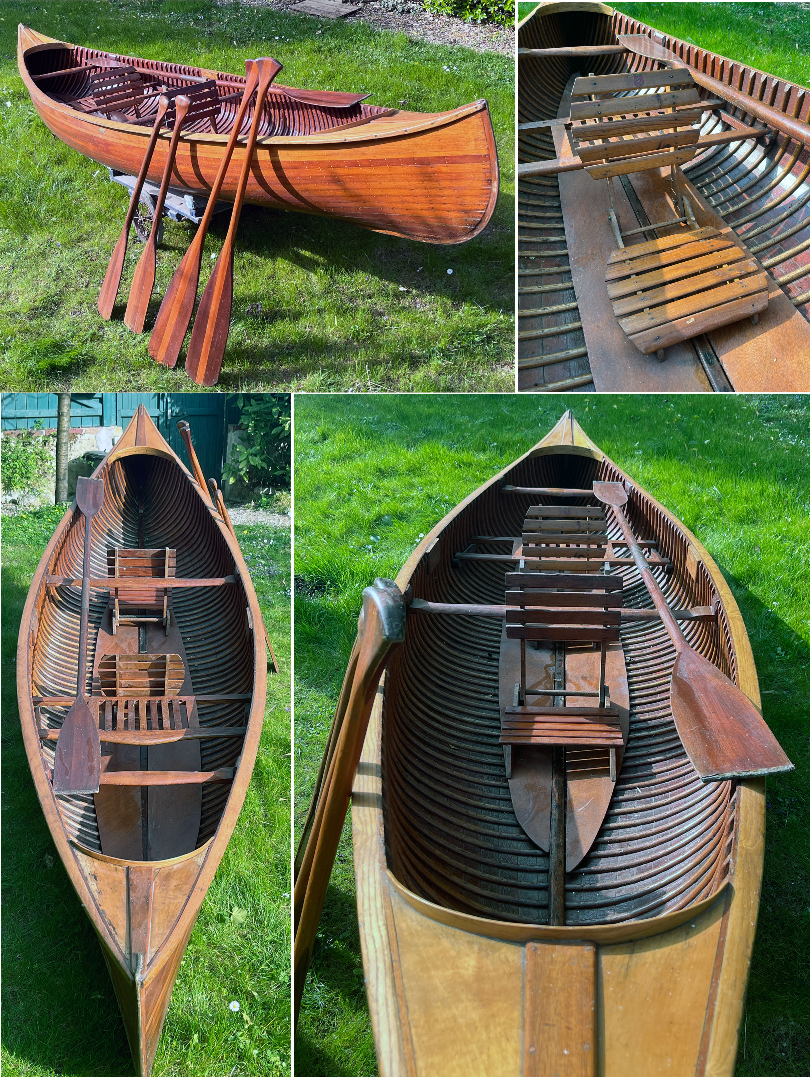Canoë en bois constructeur Maurice Rivière, Marne. 4.8m x 0.9m. visible à Lizant (86400) prix 2500 euros. (06/2024) |